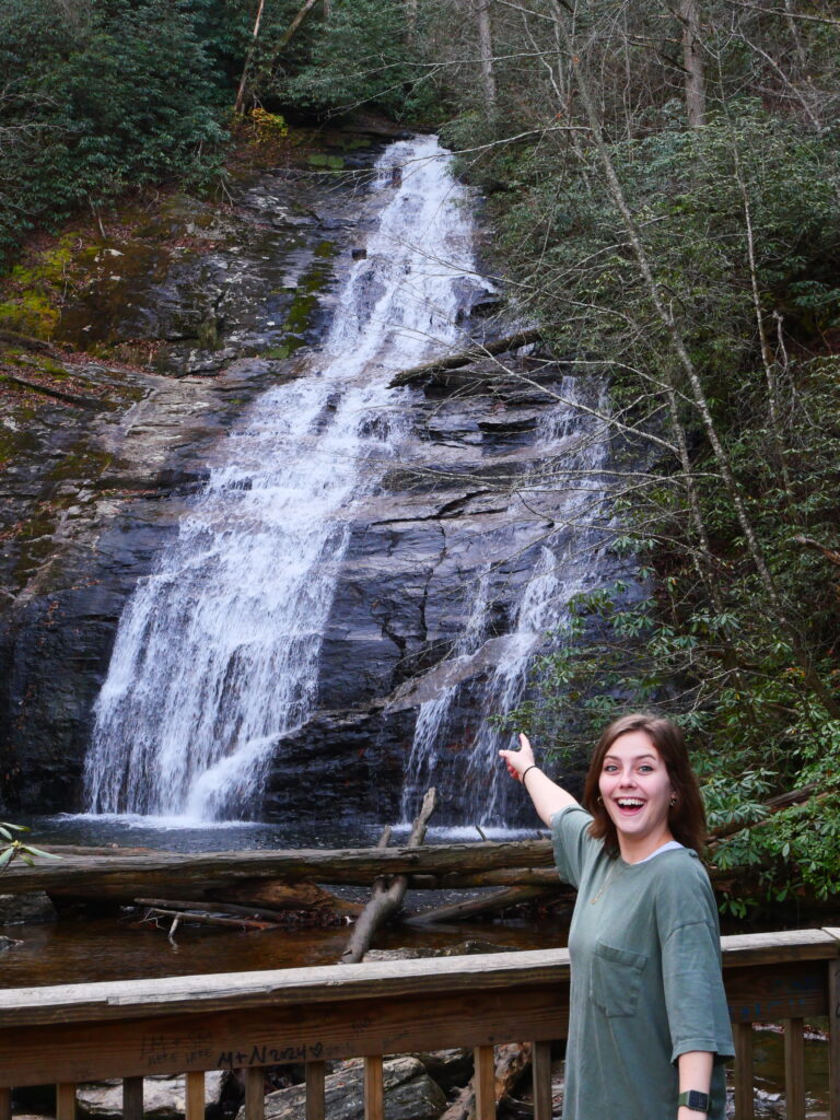 Fortunately, our first stop on the journey (wink wink) was DeSoto Falls; named after the famous Spanish explorer Hernando DeSoto, DeSoto Falls is a 2.2 mile round-trip hike along Frogtown Creek that takes about an hour to complete. DeSoto Falls has two separate trailheads which split off to the upper and lower falls – two waterfalls for the drive of one, what a steal! The trail to the upper falls is a steep but short hike, with plenty of viewing platforms and benches to rest on, and the lower falls trail is very similar in difficulty but overall short and sweet. With its well-maintained campground, navigable parking area, and plethora of rest areas, DeSoto Falls turned out to be one of the most accessible trails we hiked this weekend. We’ll be sure to visit again very soon!