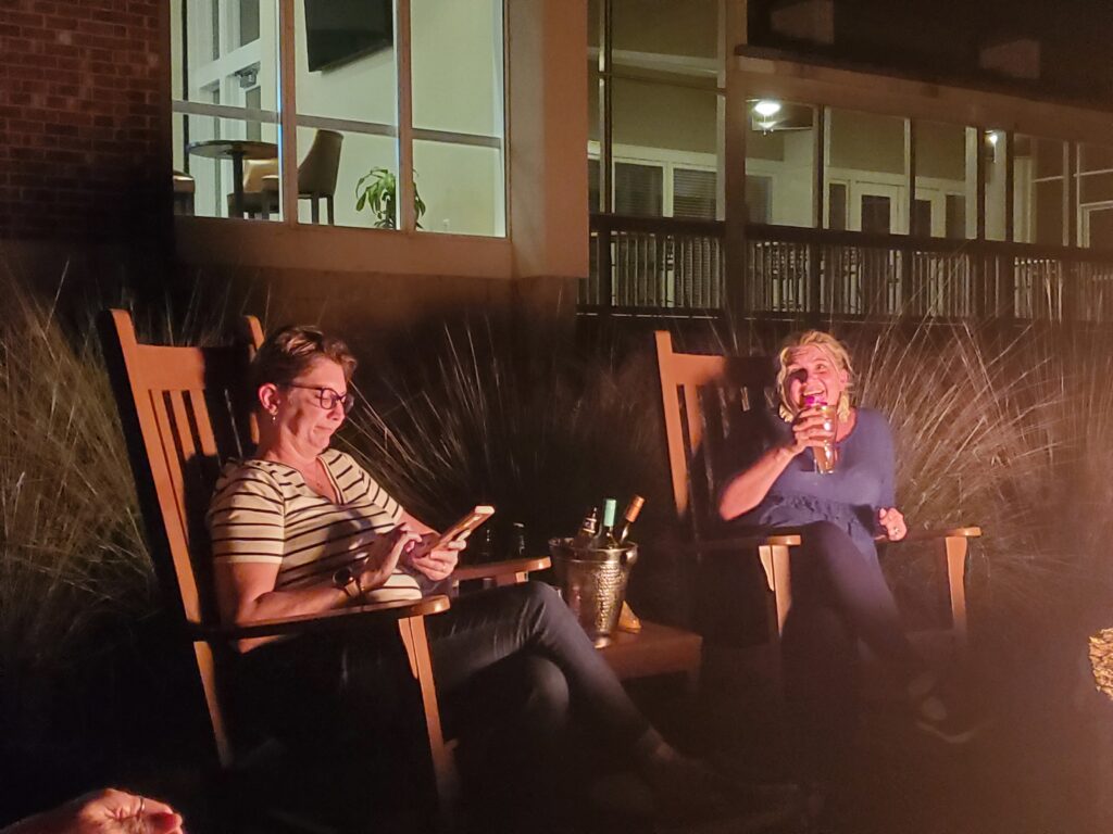 Friday night, we watched the sunset from the resort dock and then took our bucket of wine out around the firepit for an evening of much-needed girl talk.