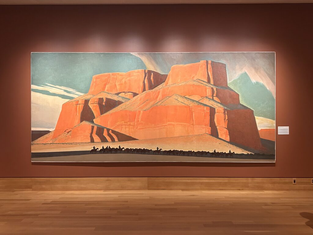 We started on the main floor in the American West Gallery, filled with traditional Western paintings and sculptures. I particularly enjoyed the Joyce & John Stevens Landscape and Wildlife Gallery, which featured one of my favorite pieces, “Canyon Passage” by Bill Hughes. The Red Bird Wagon display was also impressive.