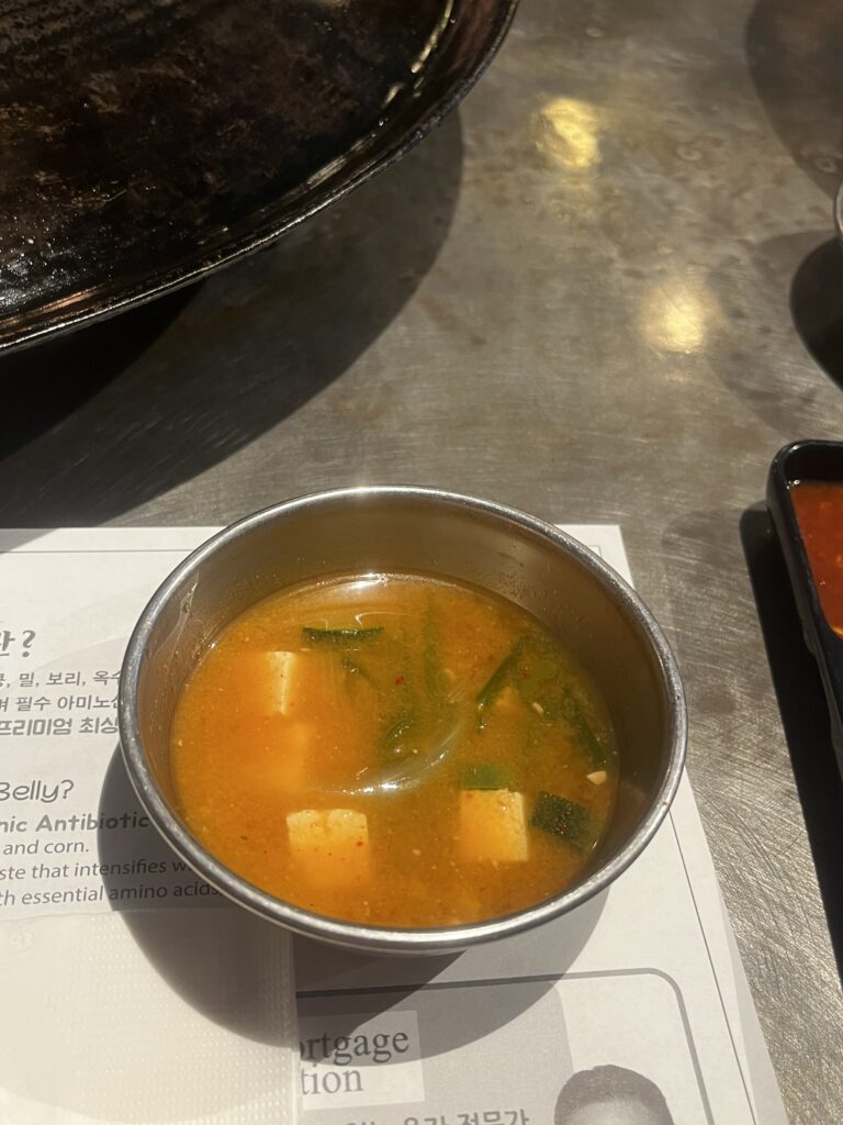 Next up on our food tour was Honey Pig run by a father and son team for Korean BBQ. I’ve visited a few different spots before but this one had a unique approach to the style of cooking with a traditional cauldron-like pot. The servers cut up kimchi and sprouts which were placed along the edge of the pot to go along with the meat. From there, we had a refreshing salad, rice, cheesy corn, bean paste stew, steamed egg and of course, a ton of beautifully marbled meat. What makes this experience so unique is that everything is grilled right in front of you! We tried a variety of meats from pork belly, spicy chicken, flower pork belly, beef brisket and beef bulgogi. I loved the thinly cut style of beef bulgogi because it gets perfectly caramelized when cooked and once dunked into the ssamjang sauce, the spice adds the perfect level of heat and flavor.