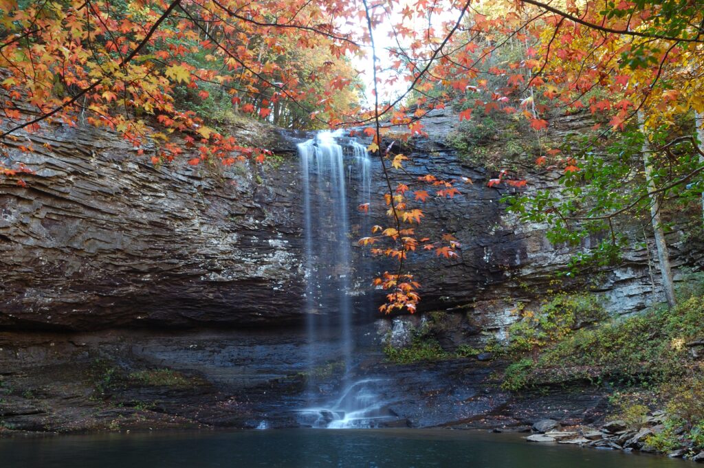 While only two miles long, the Waterfalls Trail comes in at a hardy 1,200 steps – twice as many as the number to get to the suspension bridge at Tallulah Gorge. The trail hugs the side of the gorge and rewards those who put in the time of the stair machine at the gym with twin waterfalls cascading over layers of sandstone and shale. The park also includes an 18-hole disc golf course, caves available for exploring during select months of the year, geocaching, and fishing.